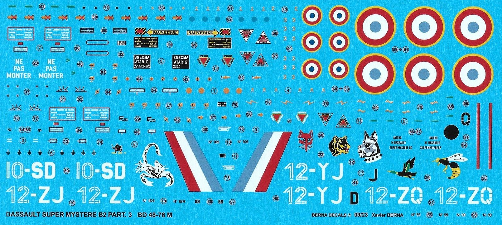 Berna Decals - Reprinted and improved: 1/48 Dassault Super Myst 're B2 Part 3 : Né°154 12-ZJ & Né°132 12-ZQ 'Cornouailles', Né°99 12-YJ 'Cambresis' & Né°59 10-SD 'Valois'.
