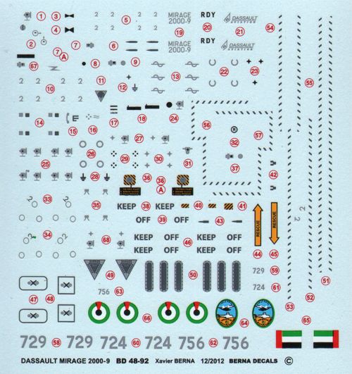 Berna Decals - 1/48 Dassault Mirage 2000-9EAD of United Arab Emirates Air Force : n?724 Dubai 11/2011, n?729 Dubai 11/2011, n?756 seen in Italy in May 2008