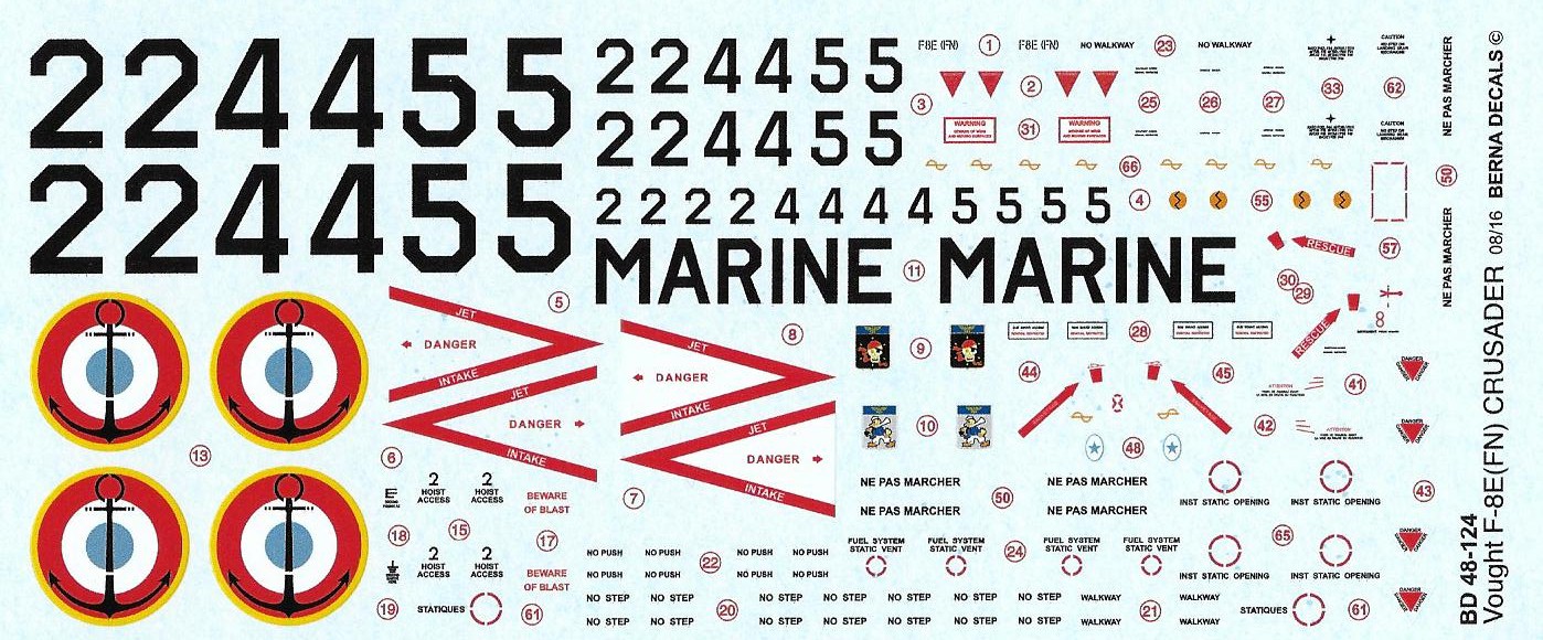 Berna Decals - 1/48 Vought F-8E (FN) French Crusader: N 25 Flotille 14F Lann-Bihoué 1973 & N 4 Flotille 12F Landivisiau 1985