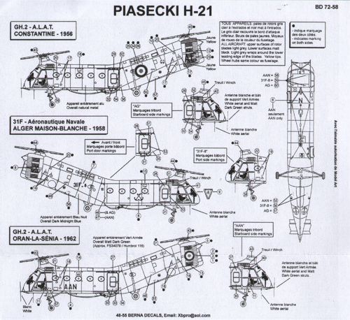 Berna Decals - 1/72 Piasecki H-21 3 GH.2 A.L.A.T Constantine 1956, 31F Aeronautique Navale Alger Maison-Blanche 1958, GH.2 A.L.A.T Oran-La-Senia 1962