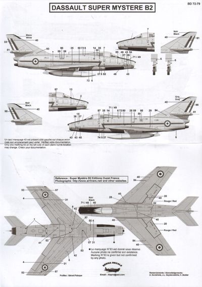 Berna Decals - 1/72 Dassault Super Mystere B2 Stencils & markings