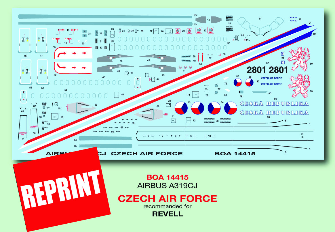 Boa Decals - 1/144 Airbus A319CJ Czech Air Force No 2801 Ceska Republika grey fuslage with red/white/blue cheat line
