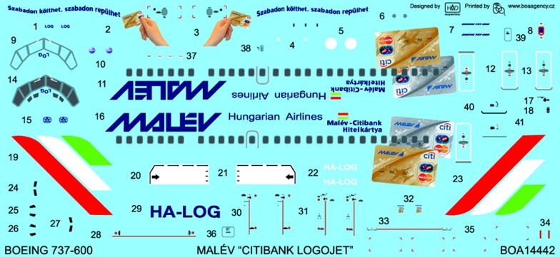 BOA Decals - 1/144 Decals Boeing 737-600 Malév Citibank (SKYL)