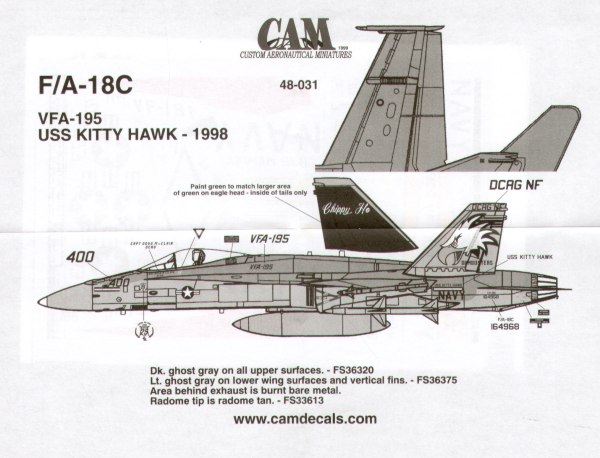 Cam Decals - 1/48 McDonnell-Douglas F/A-18C 164968 VFA-195 Dambusters NF/400 'Chippy Ho'