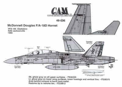 Cam Decals - 1/48 McDonnell-Douglas F/A-18D Hornet (1) 163454 AD/300 VFA-106 Nas Jacksonville 1994