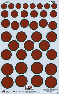 Cam Decals - 1/48 Japanese National Insignia/Hinomaru. 5 sizes with green outlines