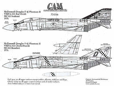 Cam Decals - 1/72 McDonnell F-4J Phantom (2) 155783 WT/76 VMFA-232 Red Devils Mcas Iwakuni 1976, 155733 DR/3 VMFA-312 Mcas Beaufort 1976