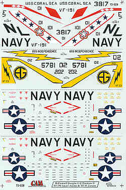 Cam Decals - 1/72 McDonnell F-4J (2) 153817 NL/101 VF-191 Satan's Kittens Bi-Cent Uss Coral Sea 1976, 155781 AG/202 VF-33 Tarsiers Uss Independence 1975