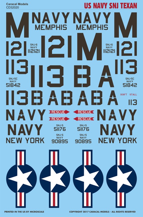 Our newest 1/32 sheet provides accurate and complete markings for four post-war overall yellow US Navy SNJ-5/6 Texans.