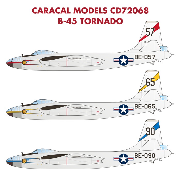 This new decal sheet provides accurate and complete markings for the recent Valom kit of the B-45 Tornado, the first jet bomber of USAF. Our decals correct the many accuracy issues in the kit sheet and provide options for three squadrons attached to the 47th BW based at the UK during the 1950s.