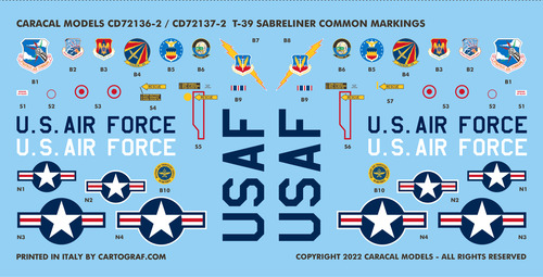 Our second 1/72 scale decal set for the T-39 Sabreliner features markings for Sabreliners flown by the US Navy as multi-engine trainers, and various utility functions. Designed for the Sword kit.