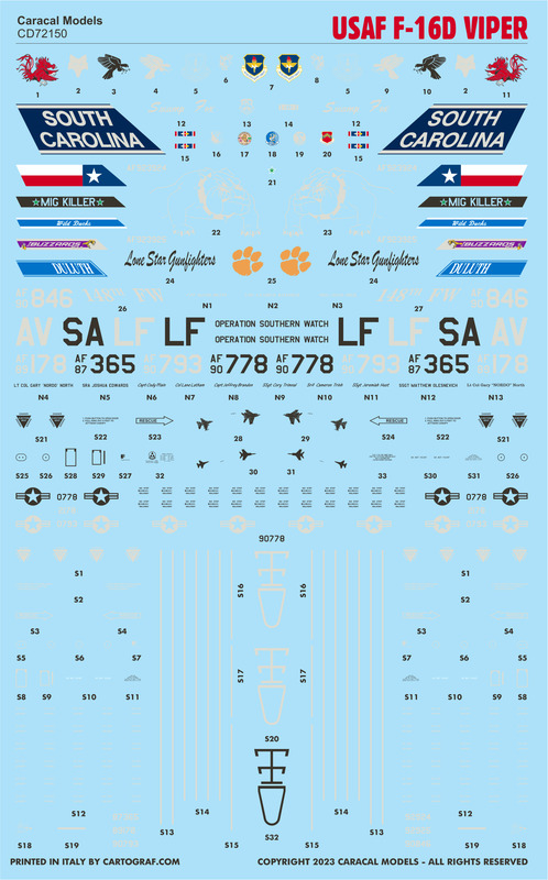 Caracal Models - 1/72 USAF Lockheed-Martin F-16D Viper Multiple marking options for USAF Lockheed-Martin F-16D twin-seat Vipers.