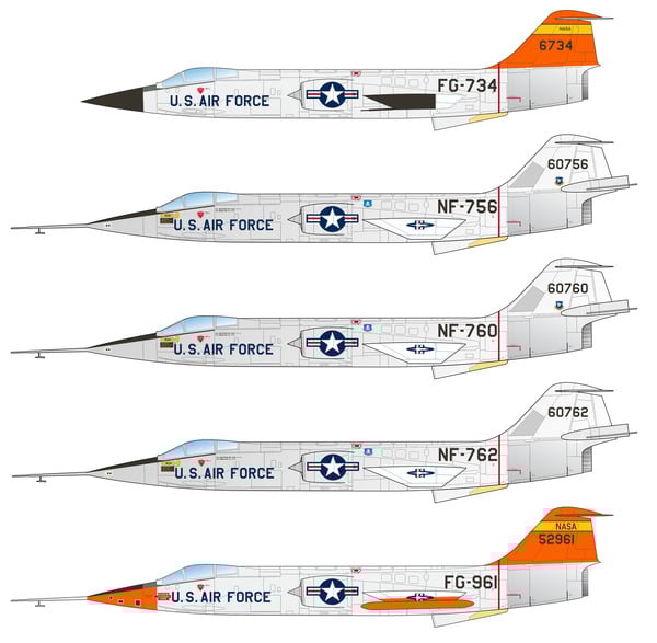 Featuring seventeen 17 carefully selected and historically accurate marking options, this 1/72 scale set highlights the F-104's involvement in experimental programs, high-speed testing, and its transition into a remotely piloted target drone. We also included markings for NF-104 and JF-104 aerospace trainers. Each option tells a story of innovation, risk, and technological advancement, capturing the essence of an era where the Starfighter was at the forefront of aerospace experimentation.