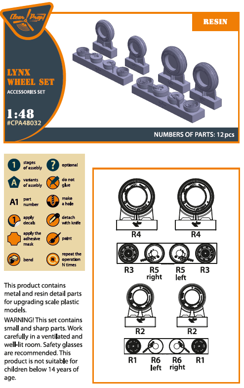 Clear Prop - 1/48 Westland Lynx Mk.88A / HMA.8 / Mk.90B wheel set for Airfix