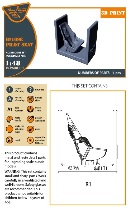 CLEAR PROP - 1/48 Bf-109E seat with safety belts WINGSY