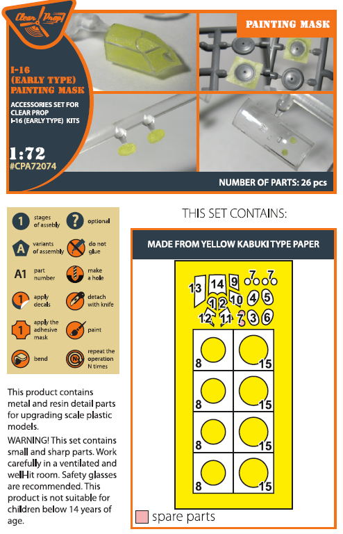CLEAR PROP - 1/72 I-16 early Painting Mask (CL.PROP)