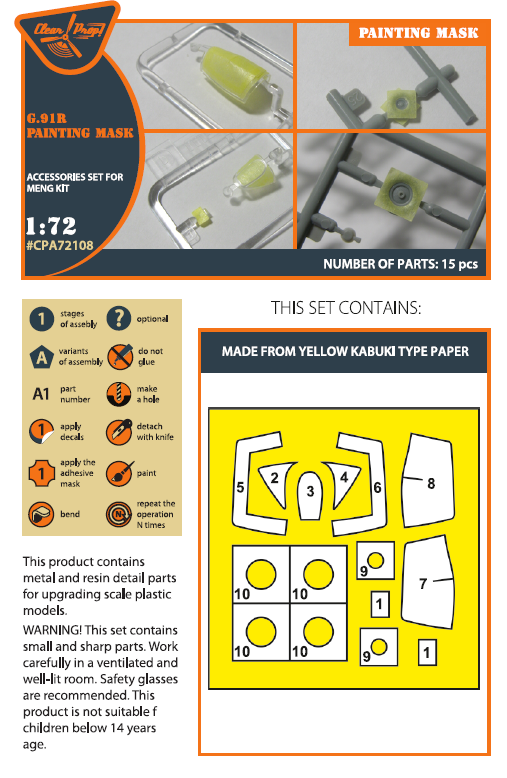 Clear Prop - 1/72 Fiat G.91R painting mask on 'yellow kabuki paper' for Meng kits