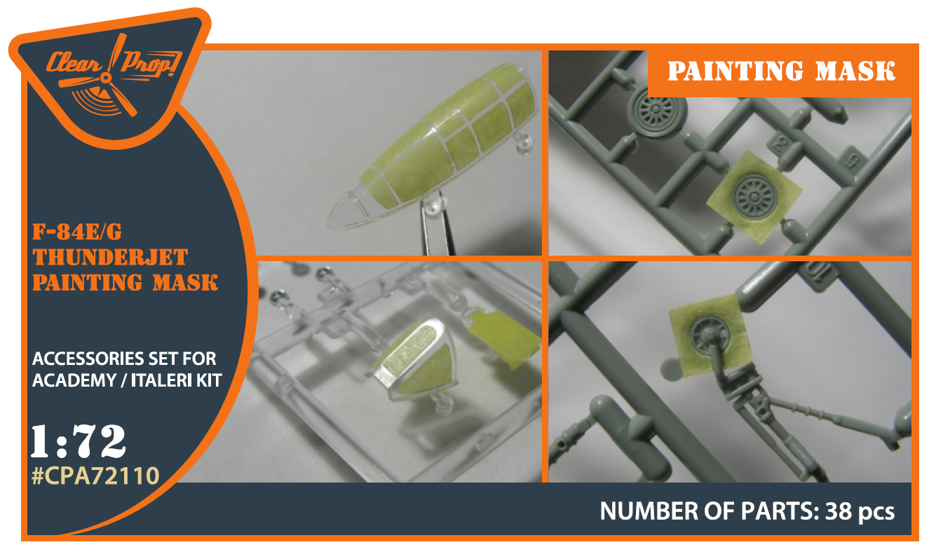 Clear Prop - 1/72 Republic F-84E/F-84G Thunderjet painting mask on 'yellow kabuki paper' for Academy and Italeri