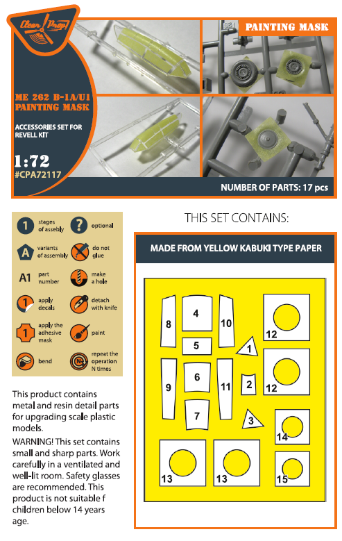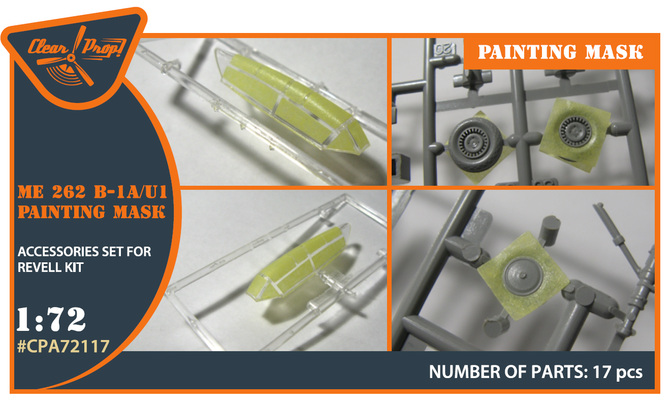 Clear Prop - 1/72 Messerschmitt Me-262B-1A/U1 painting mask on 'yellow kabuki paper' for Revell