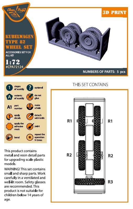 Clear Prop - 1/72 Kubelwagen type 82 Wheel set (for Academy, Dragon, Fujimi, Hobby 2000, Hasegawa, Italer and S-Model kits)
