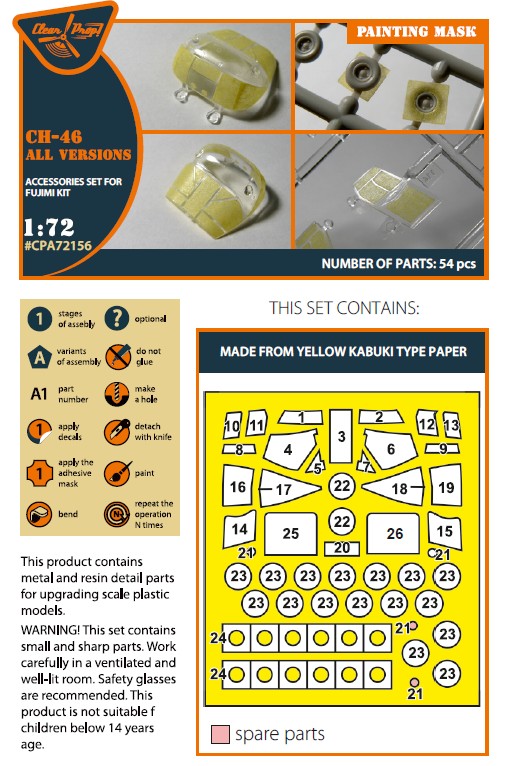CLEAR PROP - 1/72 CH-46 painting mask for Fujimi
