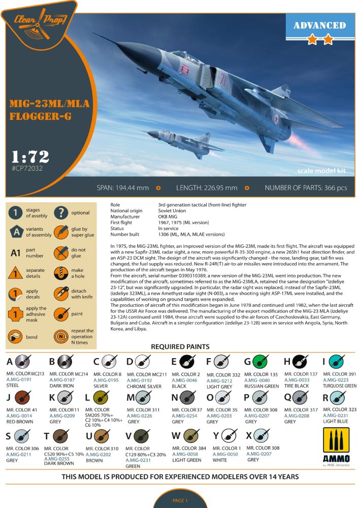 CLEAR PROP - 1/72 MiG-23ML/MLA Flogger-G, Advanced (3x camouflages)