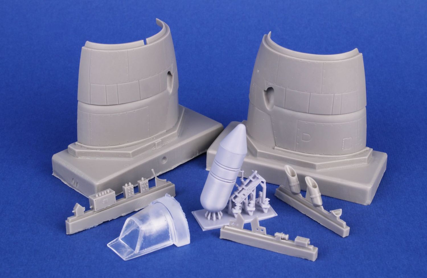 CMK - Grumman TBM-3E Avenger Conversion Set 1/48 / for Accurate/Academy kits The TBM-3E was a lightweight version of the Avenger which begun to come off production lines in 1944. The weight reduction brought better performance and the installation of the APS-4 underwing radar equipment enabled the Avenger for night missions. Our conversion set reflects both the outside and inside changes of the version-a new forward fuselage section, belly gunner station blank off parts, arrestor hook, radar and its rack for the starboard wing and the necessary interior equipment associated with the radar operation. The new parts are resin cast and some also 3D printed. This set is designed for Accurate Miniatures Avenger kits and all its reboxings by Italeri and Academy. THe decal sheet brings markings for two US Navy airframes operated in the Pto in WW2.