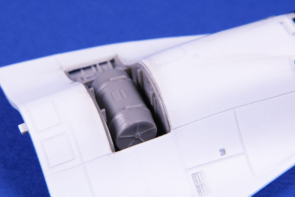 Open armament compartment showing the rotary gun of the Revell's F-16MLU. The set comes joined by photo etches. (for Revell kits)