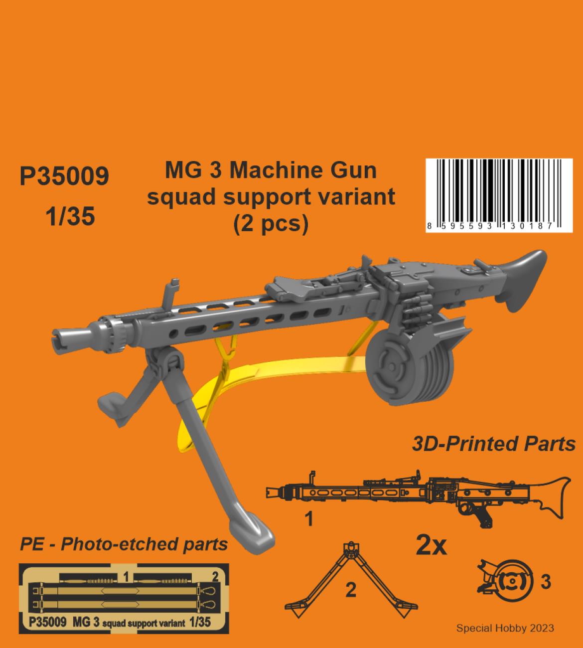 CMK - 1/35 Mg 3 Machine Gun squad support variant (2 pcs) Superbly detailed, 3D-printed MG3 machine gun in the troop-support variety with a bipod. The set contains two examples of this world-wide used weapon.