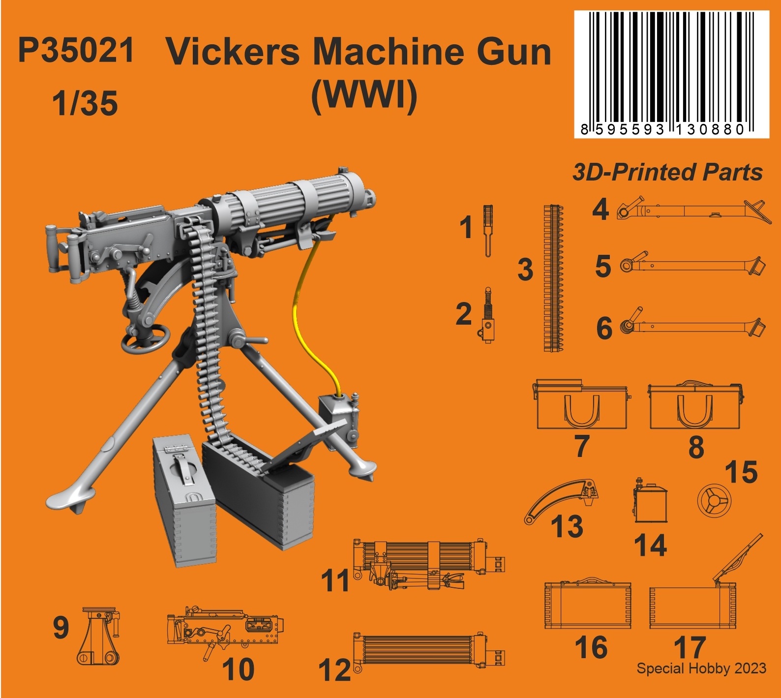 CMK - 1/35 Vickers Machine Gun (WWI) The Vickers machine gun was developed on the basis of the earlier Maxim gun. The design prouded itself with great efficacy as well as almost a hundred percent reliability. These technically perfect Vickers guns were produced in really great numbers both for the army (these were water-cooled) and for the air force, where they were air-cooled. The British army had the Vickers in use well until the end of the 1960s, and in other countries' armies, the weapon served even much longer.