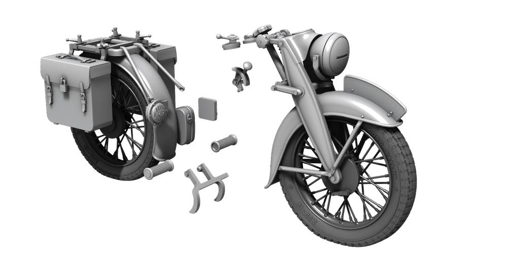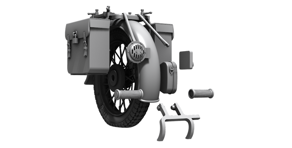 CMK - 1/35 Dkw Nz 350 Correction Set (for Tamiya kits) For the rather rusty, yet still very popular Tamiya Dkw Nz 350 kit, we have prepared this set that replaces more than a half of the kit's original parts. The reason is that the very old kit quite fails modern standards and the wheels are made one piece with the frame-which gives the bike almost toy-like impression. Try it, the results are spectacular.