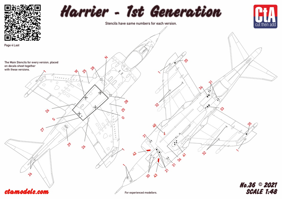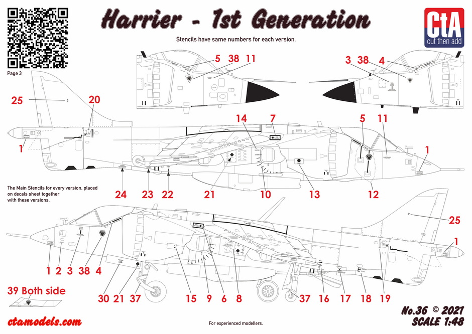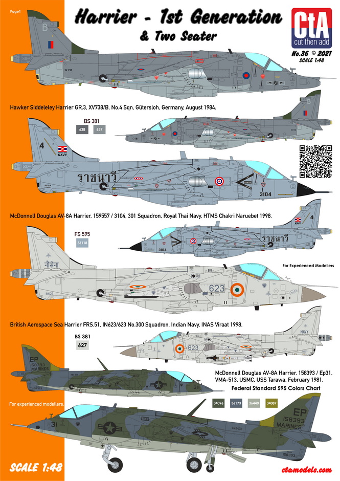 CtA Cut then Add - 1/48 BAe Harrier 1st Generations & Two Seater (UK, Thailand, India, USA, Spain 6 Markings) GR.3, AV-8A x 2, Sea Harrier FRS.51,