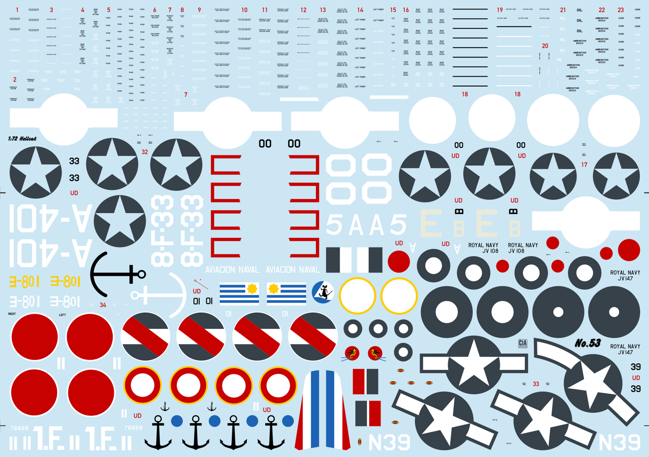 CtA Cut then Add - 1/72 Grumman F6F Hellcat USN, FAA, Japan, Aeronavale, Uruguay, 8 Markings