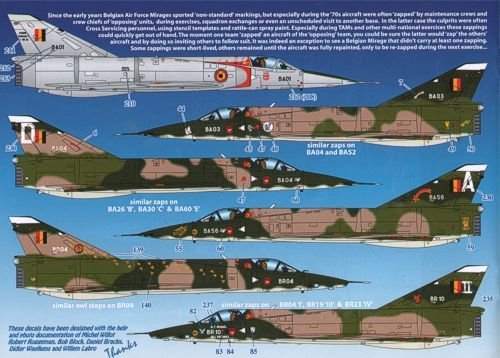 1/48 Scale Belgian Air Force Mirage 5 Stencilling & zappings