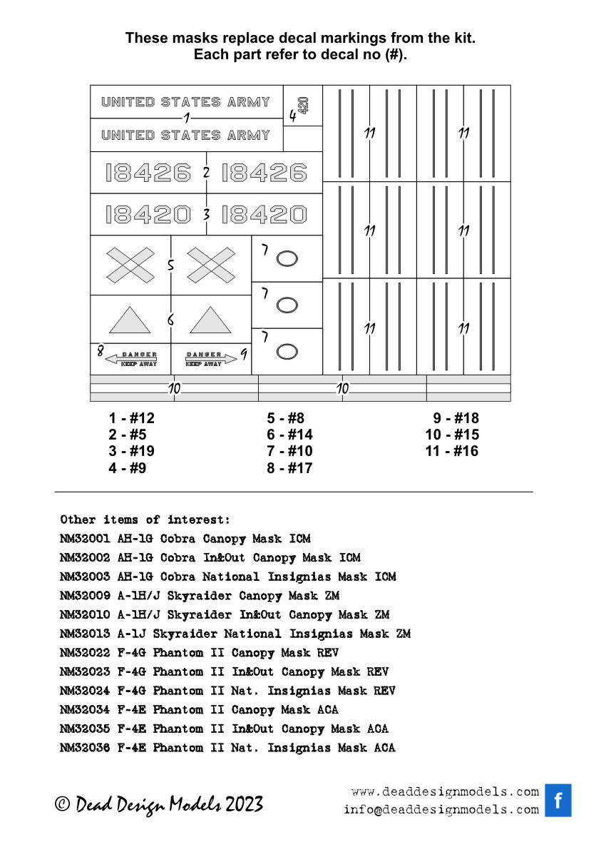 Dead Design Models - 1/32 Sikorsky CH-54A Tarhe National Insignia Markings (for Icm kits) masks