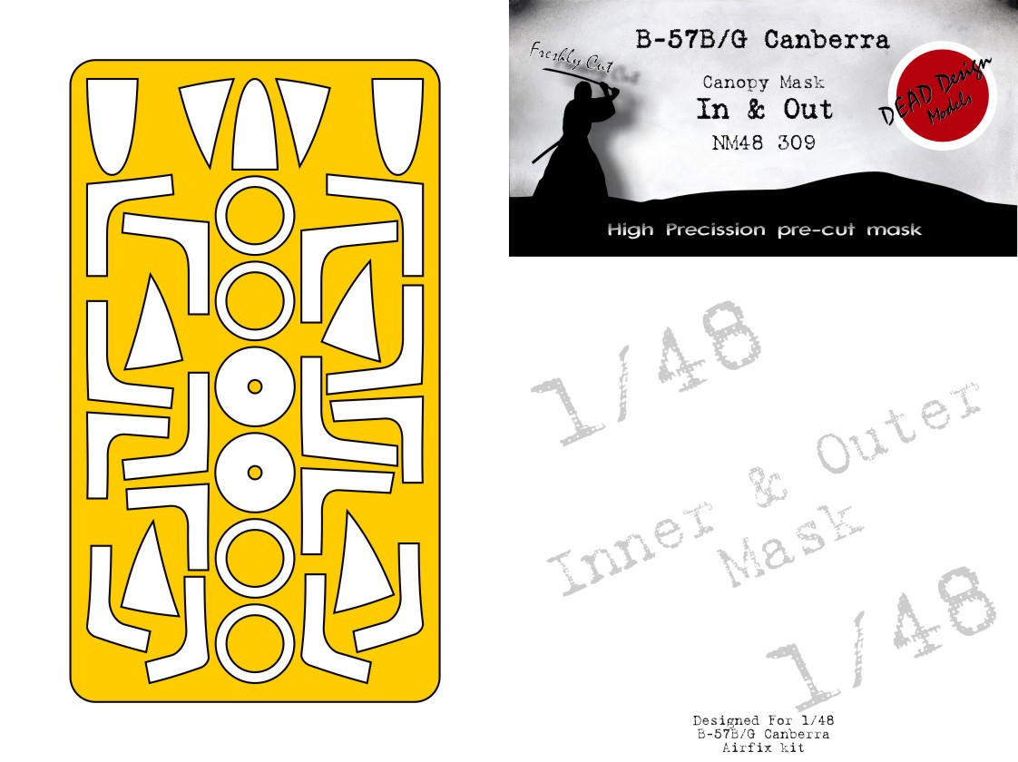 Dead Design Models - 1/48 B-57B/G Canberra canopy frame paint mask inside and outside for Airfix kits BAC/EE Canberra B-57B/Martin RB-57E/Martin RB-57G