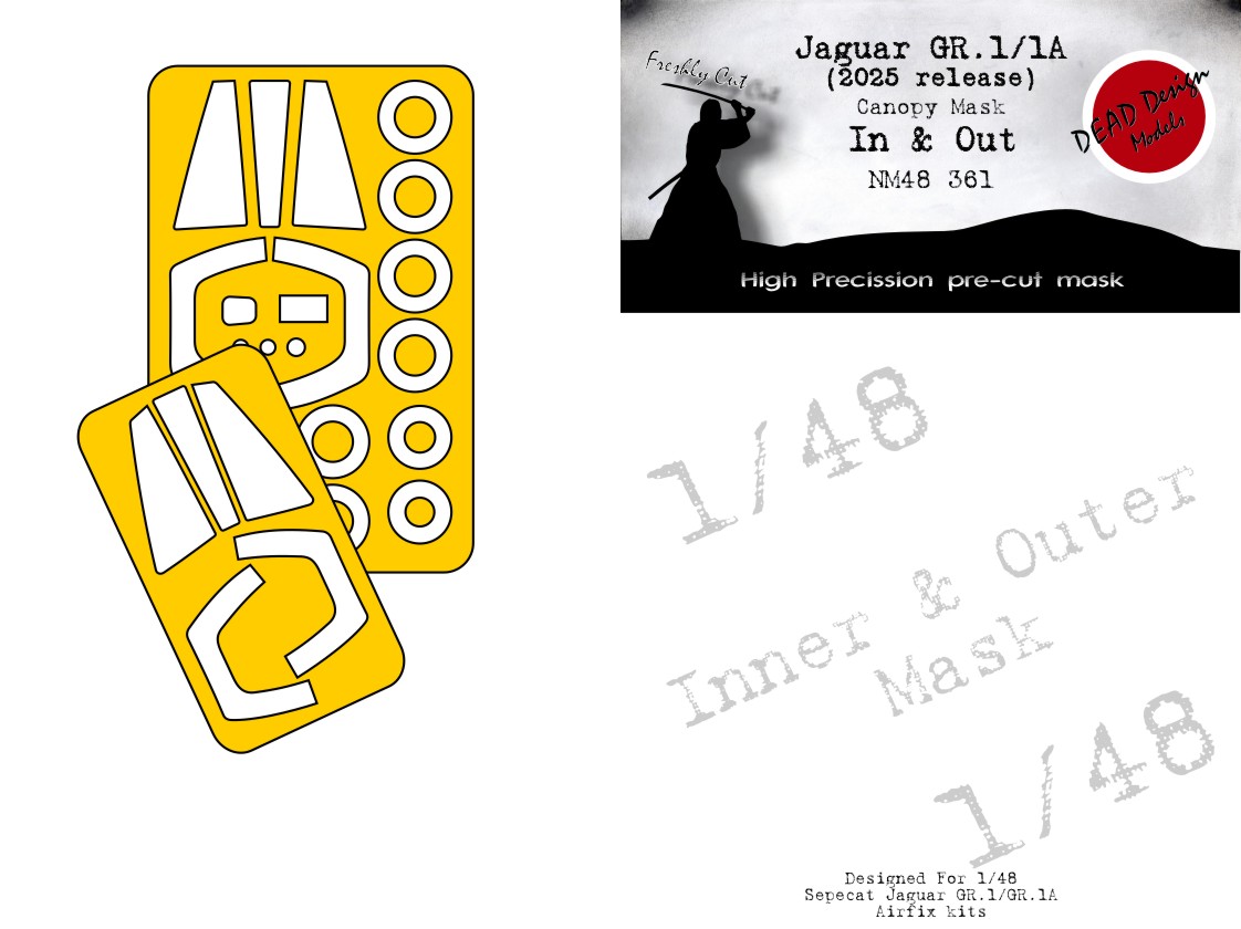 Dead Design Models - 1/48 Sepecat Jaguar GR.1 canopy frame paint mask inside and outsidemask for Airfix