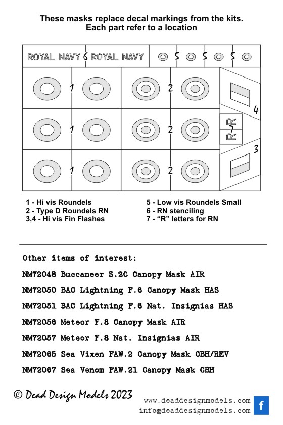 Dead Design Models - 1/72 Buccaneer S.2B/D National Insignia (1989 rel.)(for Airfix kits) masks