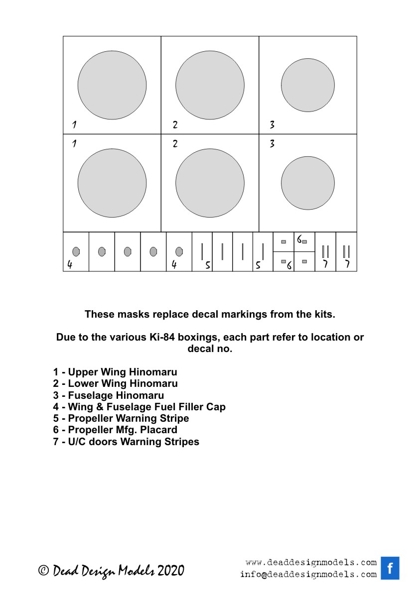 Dead Design Models - 1/32 Nakajima Ki-84 national insignias without white outline (for Hasegawa kits)