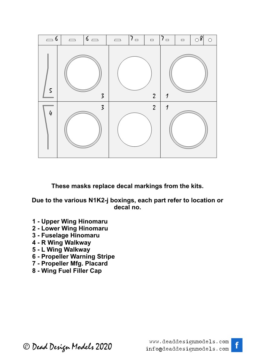 Dead Design Models - 1/32 Mitsubishi J2M2/J2M3/J2M white stripe, stencils and national insignias with white outlines (for Hasegawa kits)