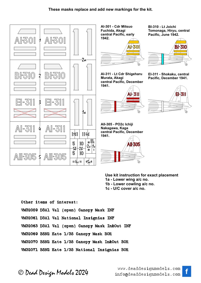 Dead Design Models - 1/35 Nakajima B5N2 Kate markings mask for Border