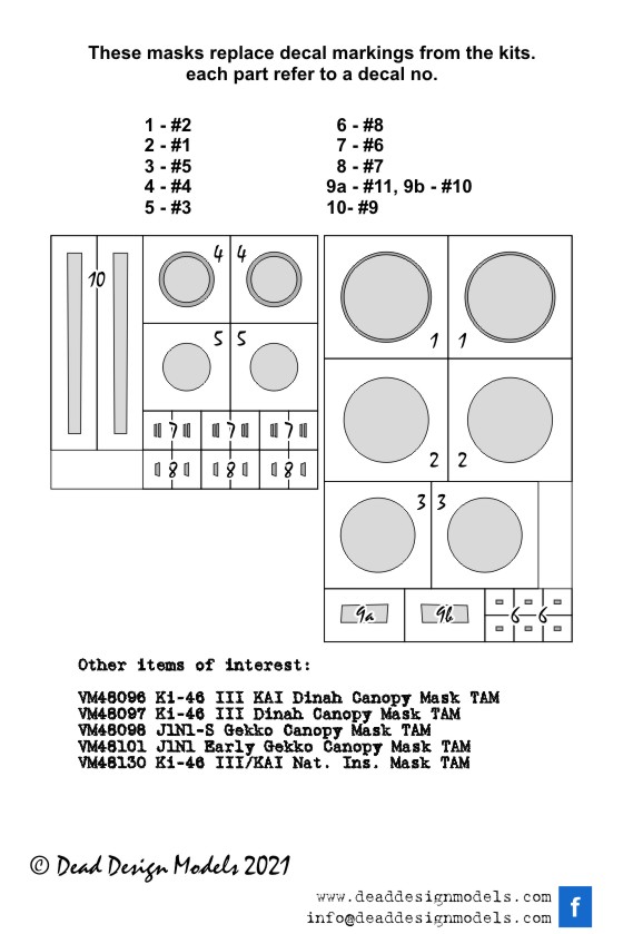 Dead Design Models - 1/48 Nakajima J1N1 Gekko National Insignia paint masks (for Tamiya kits)