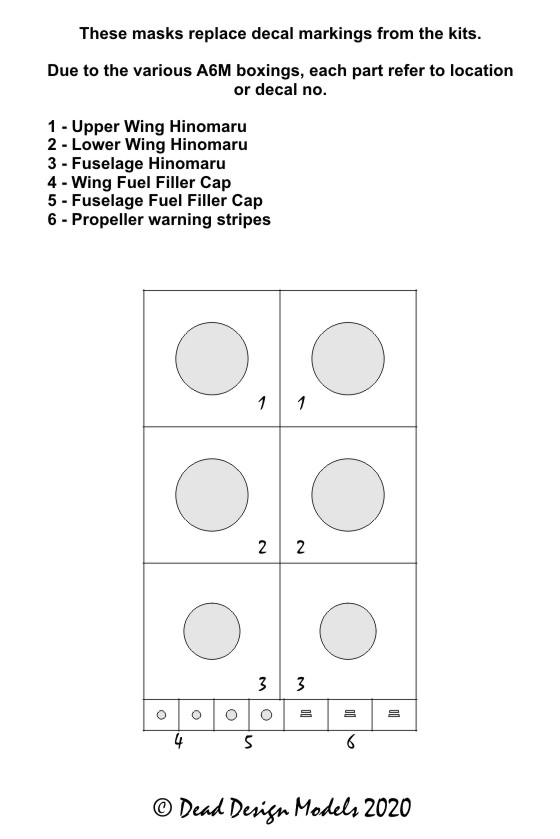 Dead Design Models - 1/72 Mitsubishi A6M1/A6M2/A6M3 National Insignia paint masks without white outline (for Hasegawa and Tamiya kits)