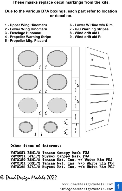 Dead Design Models - 1/72 Aichi B7A1/B7A2 Ryusei National inignia with white outline (for Fujimi kits)