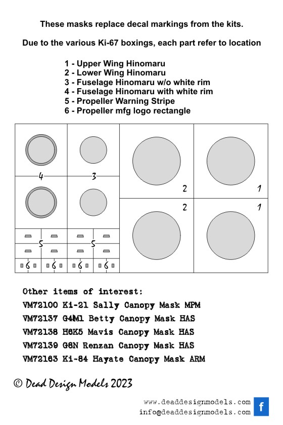 Dead Design Models - 1/72 Mitsubishi Ki-67 Hiryu National Insignia & Markings (for Hasegawa kits) masks