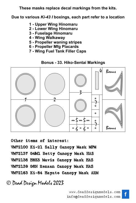 Dead Design Models - 1/72 Nakajima Ki-43-II/Ki-III Hayabusa National Insignia for Hasegawa and Special Hobby kits masks