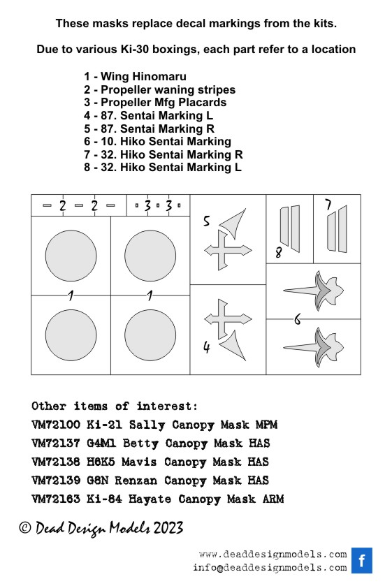 Dead Design Models - 1/72 Mitsubishi Ki-30 'Ann' national insignia for Fujimi kits masks