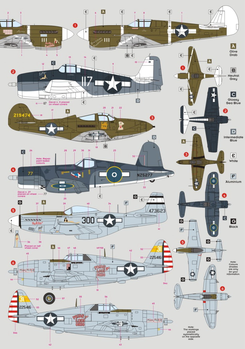 DK Decals - 1/48 Pacific Fighters Pt.1: Warhawk, Hellcat, Airacobra, Corsair, Mustang, Thunderbolt