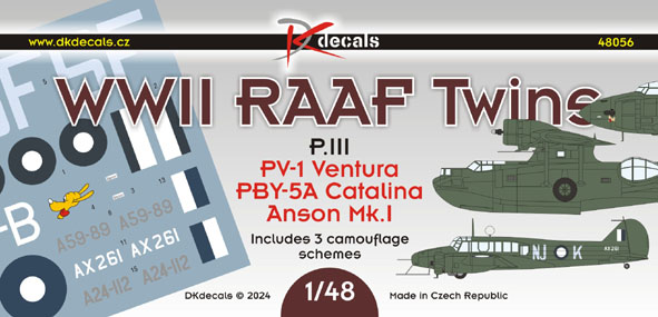 DK DECALS - 1/48 WWII RAAF Twins Part III 3x camouflages decal