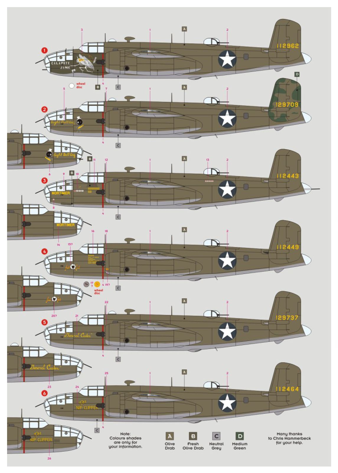 1/48 B-25C/D Mitchell The Grim Reapers 6x camouflages decal